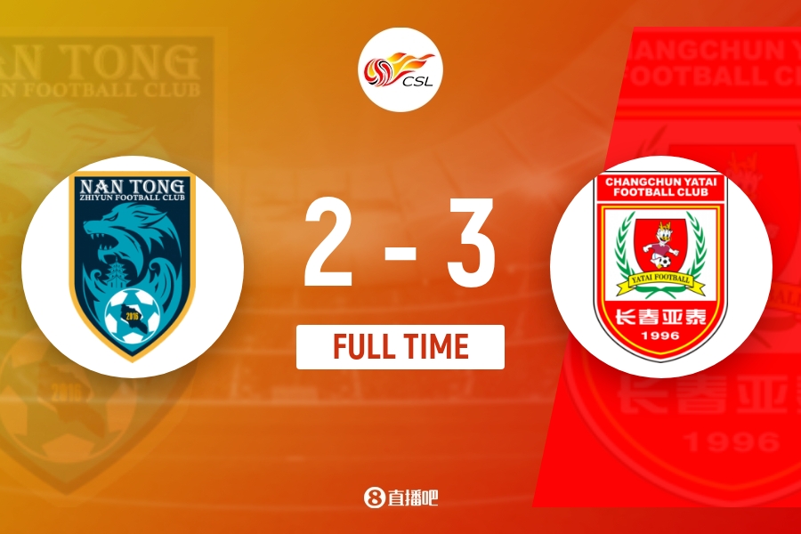 全场比赛结束,长春亚泰3-2南通支云。
