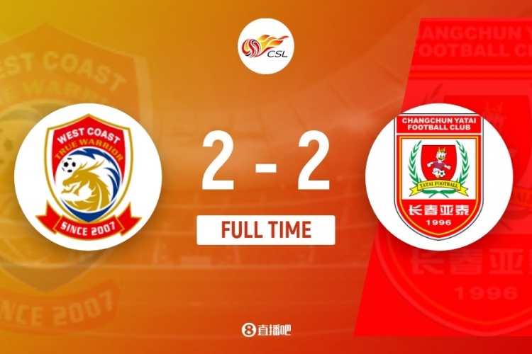 伤停补时7分钟。全场比赛结束,青岛西海岸2-2长春亚泰。