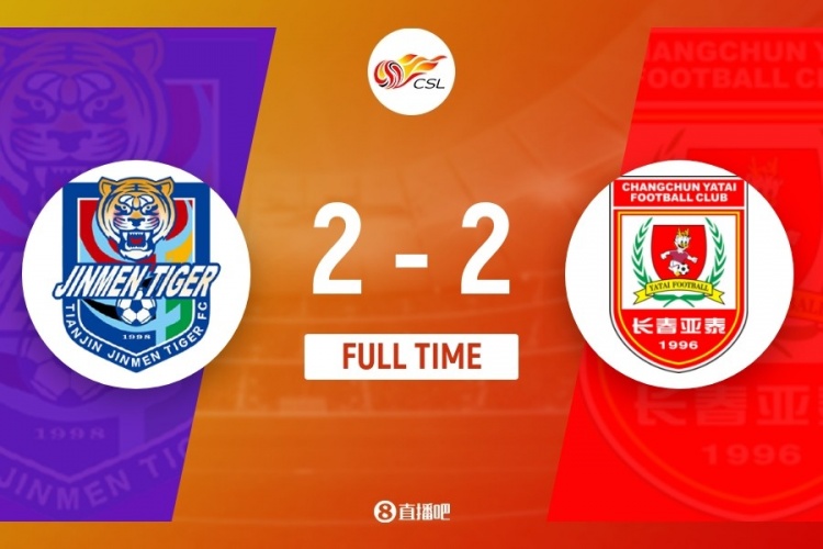 伤停补时9分钟。全场比赛结束,天津津门虎2-2长春亚泰。