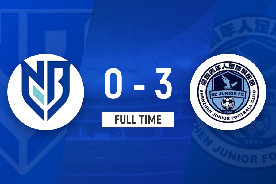 全场比赛结束,宁波0-3深圳青年人。