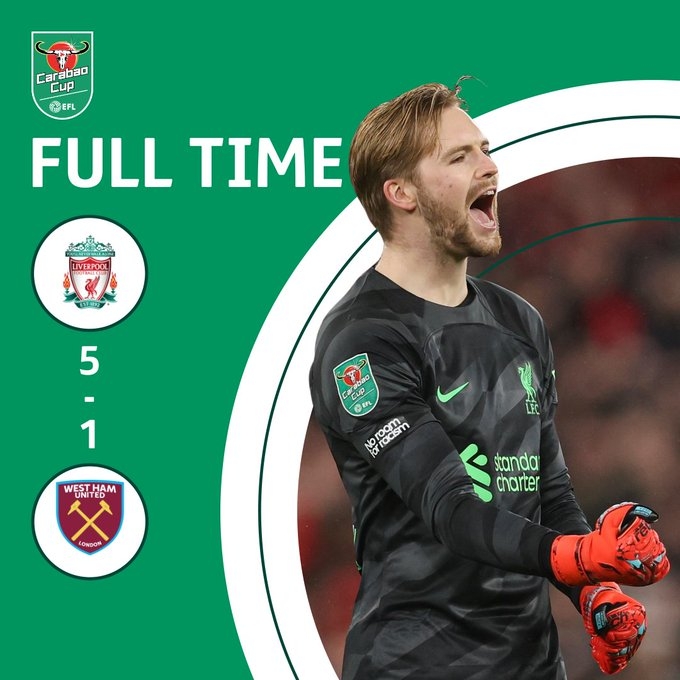 12月21日讯 北京时间12月21日凌晨4点整,2023-24赛季英格兰联赛杯1/4决赛在安菲尔德球场展开角逐,利物浦坐镇主场迎战西汉姆。上半场索博斯洛伊世界波,下半场琼斯梅开二度,加克波破门,鲍文扳回一城,萨拉赫失空门后建功。最终利物浦主场5-1大胜西汉姆晋级四强,红军终结各赛事两场不胜。