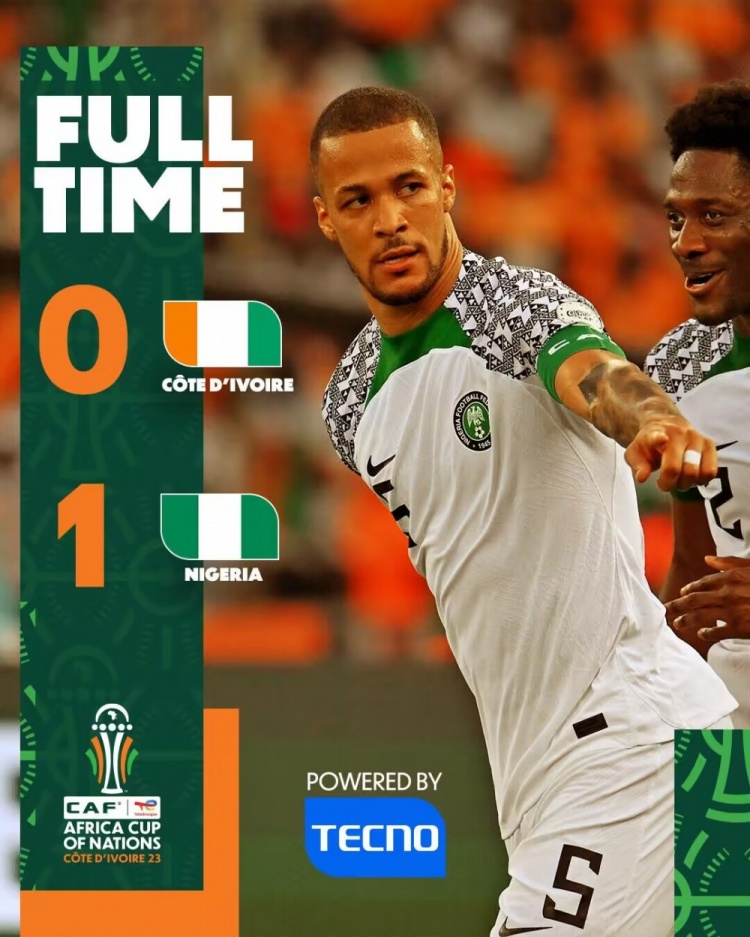 全场比赛结束,尼日利亚1-0科特迪瓦。
