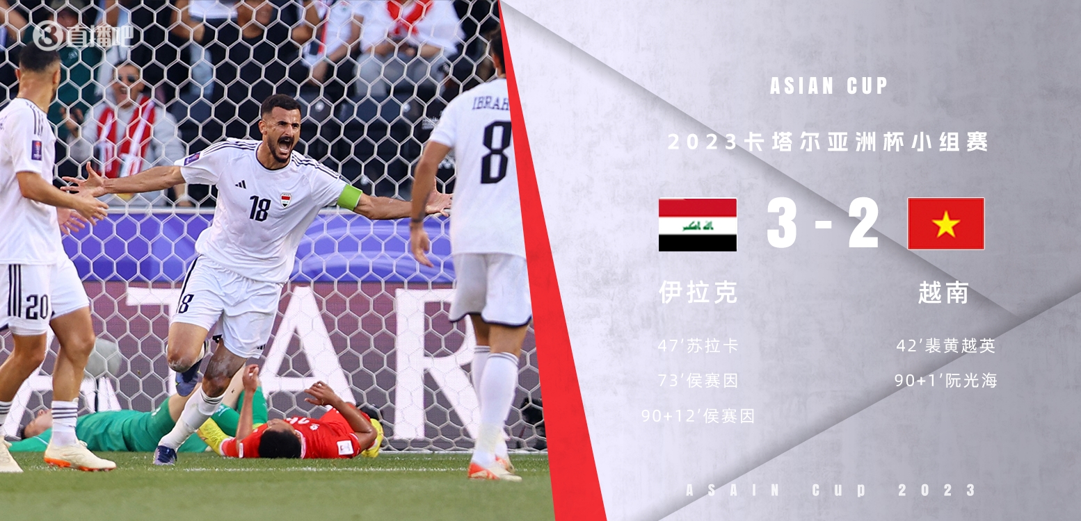 亚洲杯-伊拉克3-2十人越南3战全胜头名出线 越南3战皆败垫底出局