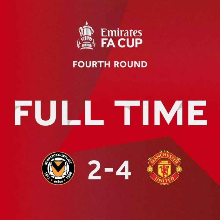 足总杯-曼联4-2纽波特进16强 安东尼赛季首球+传射梅努处子球