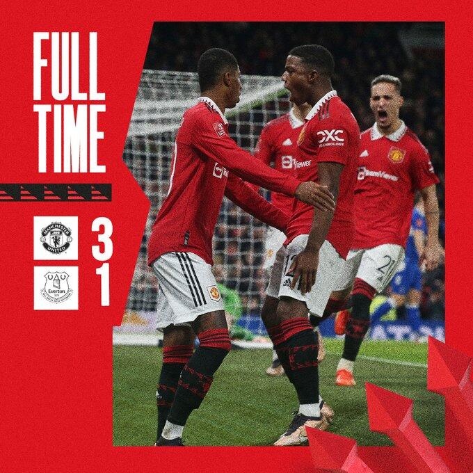 1月7日讯 北京时间1月7日凌晨4点整,2022-23赛季足总杯第3轮在老特拉福德球场展开角逐,曼联坐镇主场迎战埃弗顿。上半场安东尼首开纪录,拉什福德助攻,德赫亚失误送礼,考迪扳平,下半场拉什福德造乌龙后点射破门,加纳乔造点。最终曼联主场3-1战胜埃弗顿晋级下一轮,红魔豪取各项赛事7连胜。