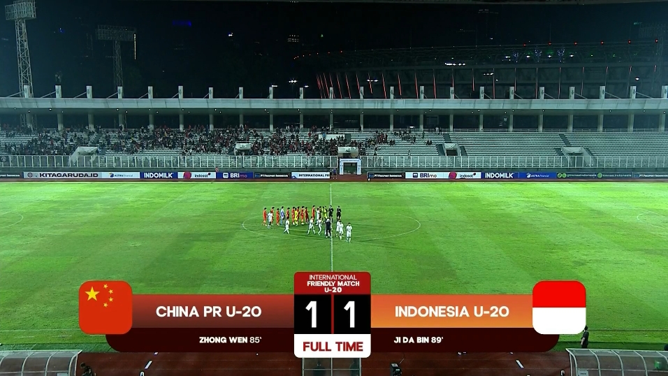 3月25日讯 北京时间3月25日21点30分,U19国青友谊赛客场再战印尼国青,双方首场比赛国青最后1-1被印尼逼平。上半场,国青有一次前场抢断的机会没把握住。下半场,印尼门将出球失误,钟文打进制胜球,印尼89分钟世界波绝平。全比赛结束,U19国青1-1印尼国青。