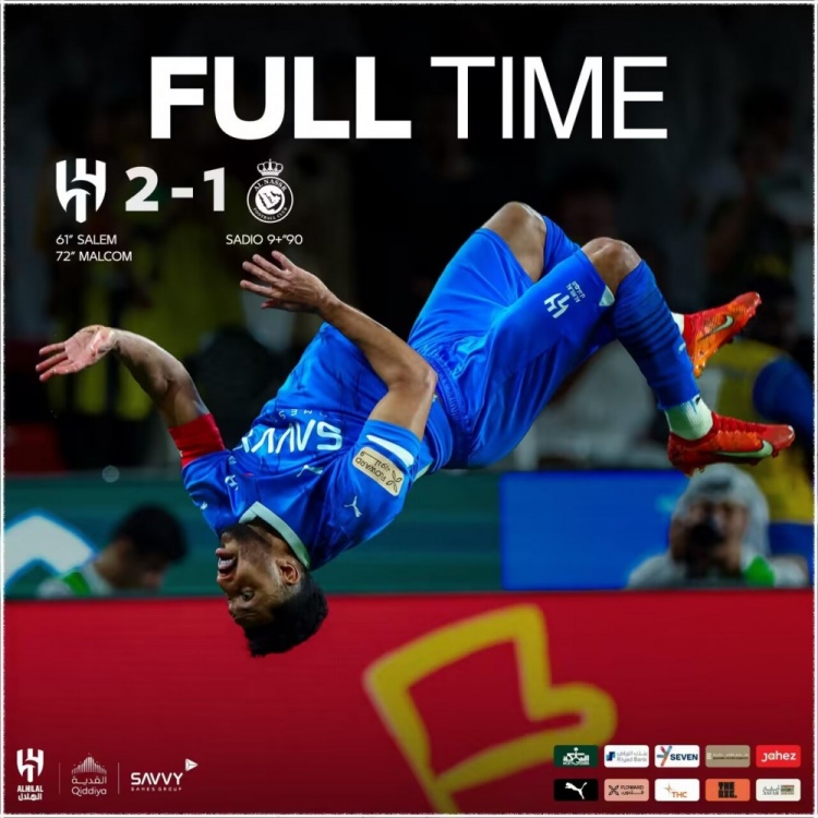 4月9日讯 北京时间4月9日凌晨3时30分,2023-24赛季沙超杯半决赛展开角逐,利雅得新月对阵利雅得胜利。上半场奥塔维奥进球被吹C罗越位干扰,下半场多萨里&马尔科姆破门,马内补时扳回一城,C罗肘击染红后向裁判举起拳头&鼓掌点赞。最终利雅得新月2-1击败利雅得胜利进军决赛,新月豪取各赛事33连胜刷新足坛纪录,沙超杯决赛将迎战吉达联合。
