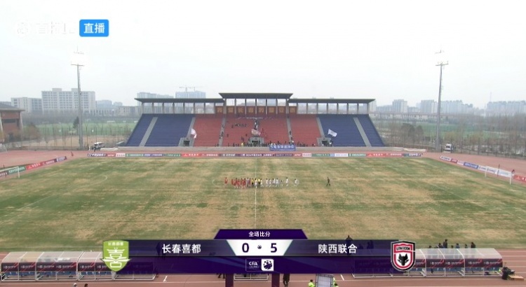 全场比赛结束,陕西联合5-0长春喜都。