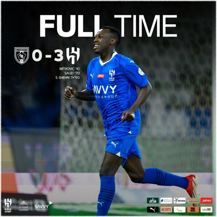 全场比赛结束,利雅得新月客场3-0击败布赖代合作,以12分优势领跑积分榜。