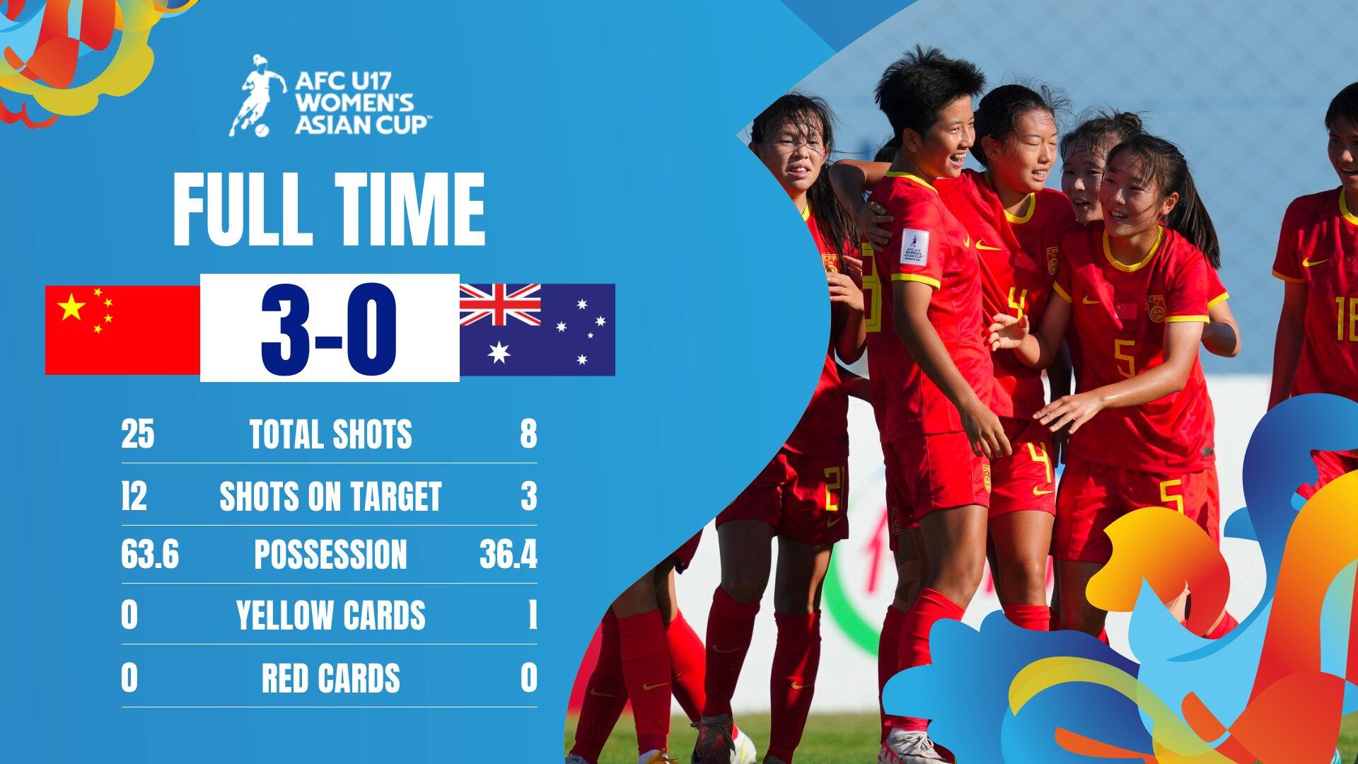 亚洲杯开门红!U17女足3-0澳大利亚 将战泰国日本赛事前3进世少赛