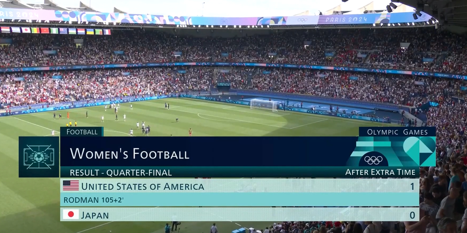 奥运女足-罗德曼破门美国加时1-0日本进四强 将战加拿大/德国胜者