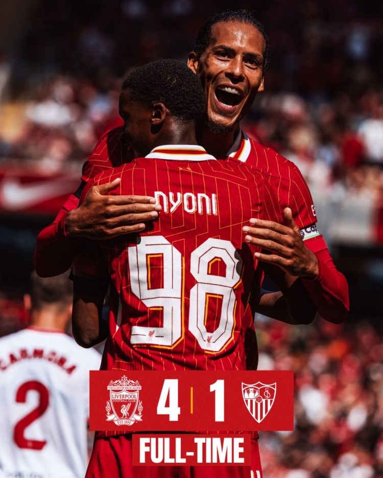 8月11日讯 北京时间8月11日19:30,足球友谊赛利物浦迎战塞维利亚的比赛,上半场伊丹博失单刀,阿诺德助攻若塔凌空抽射破门,随后若塔助攻迪亚斯抽射扩大比分,补时迪亚斯推射再下一城,半场结束,利物浦3-0塞维利亚。下半场小杰拉德兜射扳回一城,尼奥尔抽射扩大比分,最终利物浦4-1塞维利亚季前赛四连胜。