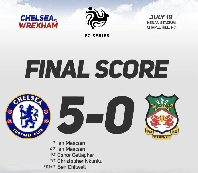 第42分钟,切尔西扩大比分!中路弧顶马特森和楚克乌梅卡撞墙配合后推射破门,切尔西2-0雷克瑟姆。↓