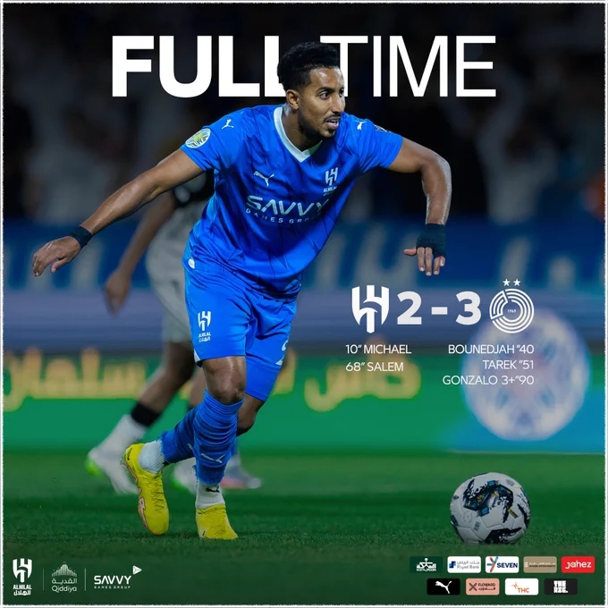 下半场,萨勒曼破门助萨德反超比分,达瓦萨里点射扳平,普拉塔补时绝杀!最终全场比赛结束,利雅得新月2-3萨德。