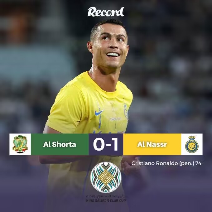 阿拉冠-C罗连续4场破门马内造点 利雅得胜利1-0巴格达警察进决赛