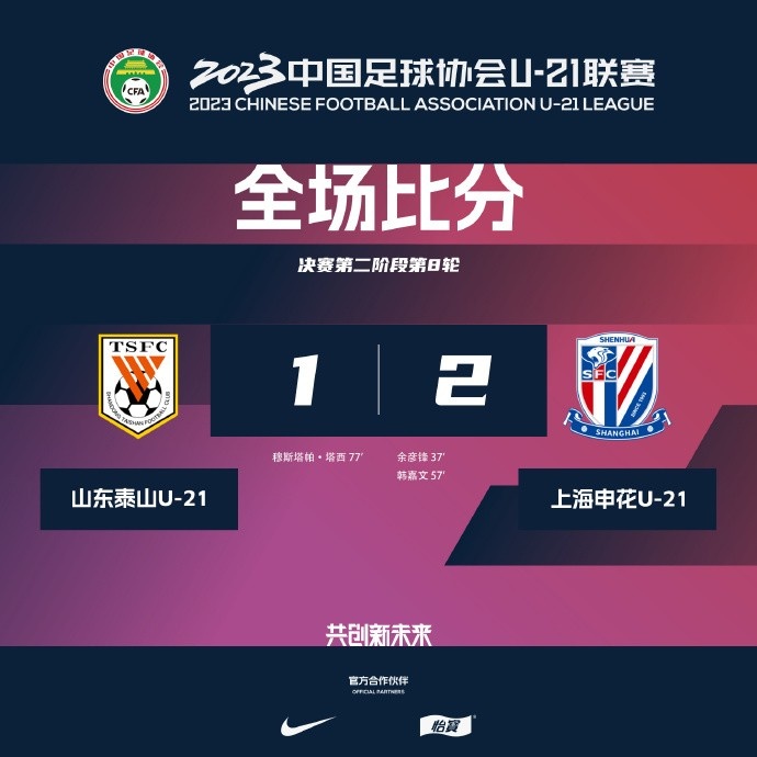 U21联赛榜首大战:申花2-1力克泰山,反超对手跃居积分榜榜首